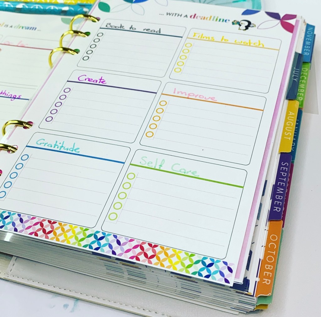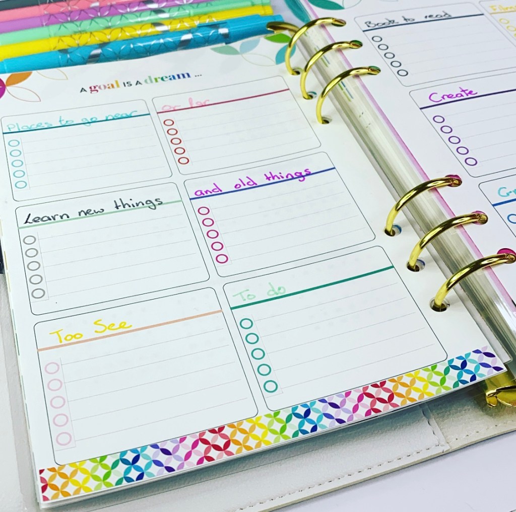 The checklists are also perfect for ticking off my goals once I have achieved them and of course they are in the bright rainbow colours. The boxes are nice little sections, which allowed me to split my goals up into different areas.
