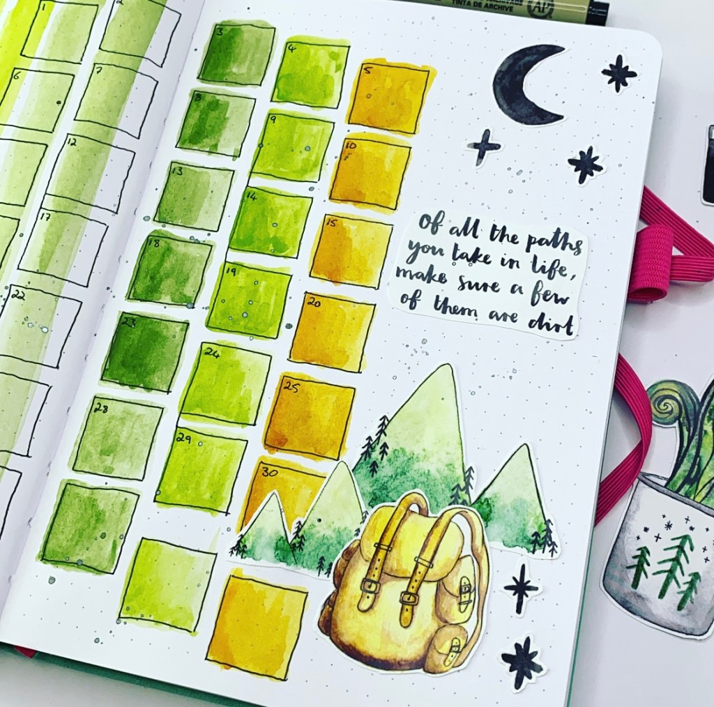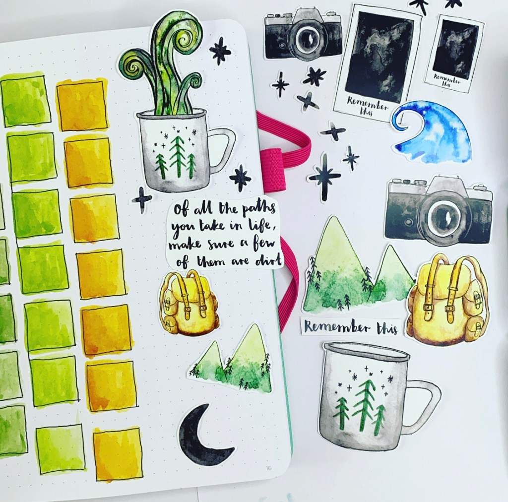 Today though I slowed down and reached for my watercolour and bullet journal. Taking the colours from the collage sheet designed by my green cow exclusively for this months lollipop box, I wanted to create my background to look like colour swatches.