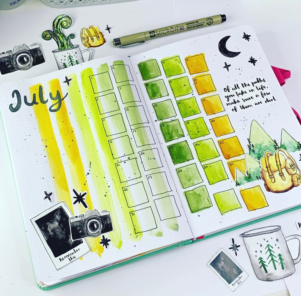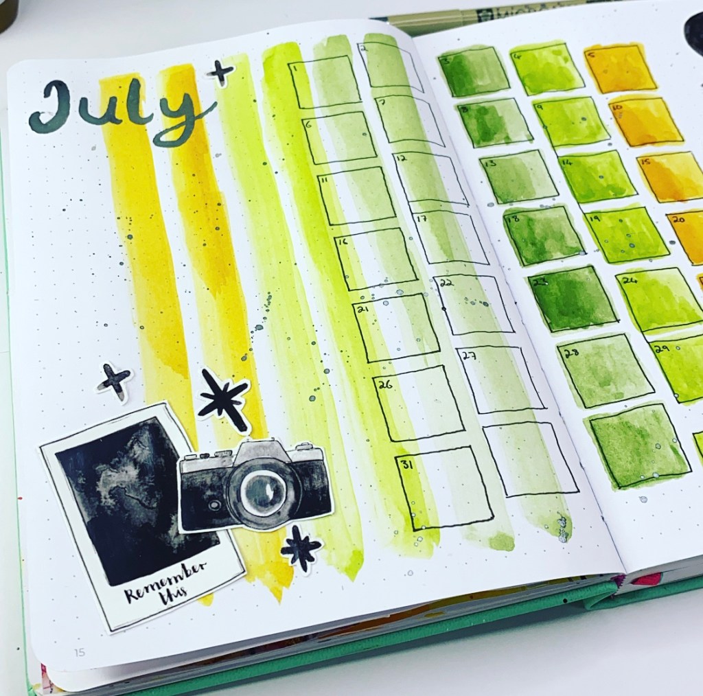 I used my metallic watercolours to add the July header and a few paint splatters, I almost made it without any splatters 🤣