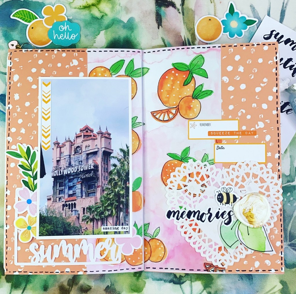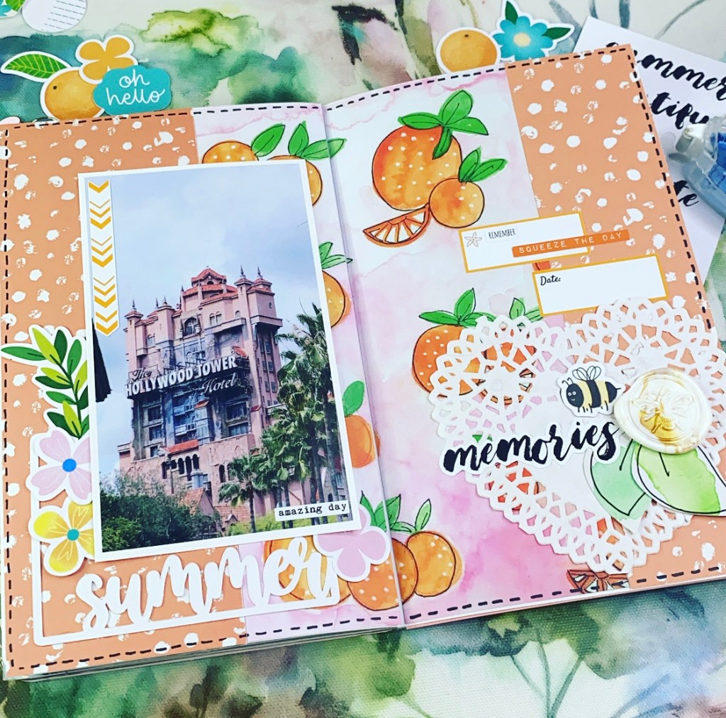 Do you ever open up a kit and automatically be reminded of a place or person, well that’s what happened to me as I opened the Orange Blossom kit. It reminds me so much of Orlando Florida and I knew exactly which day I wanted to document with it.