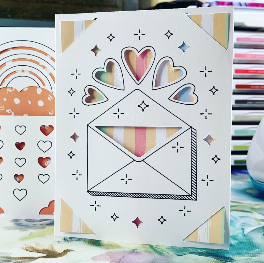 I have used the stripe paper behind the cutouts and I love how it looks. The Cricut not only cuts the design but it also draws too.
