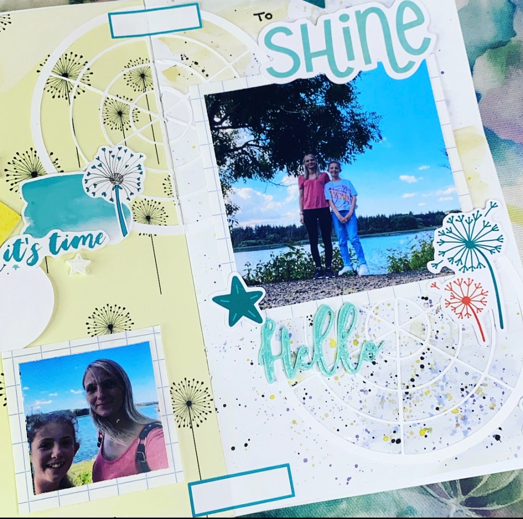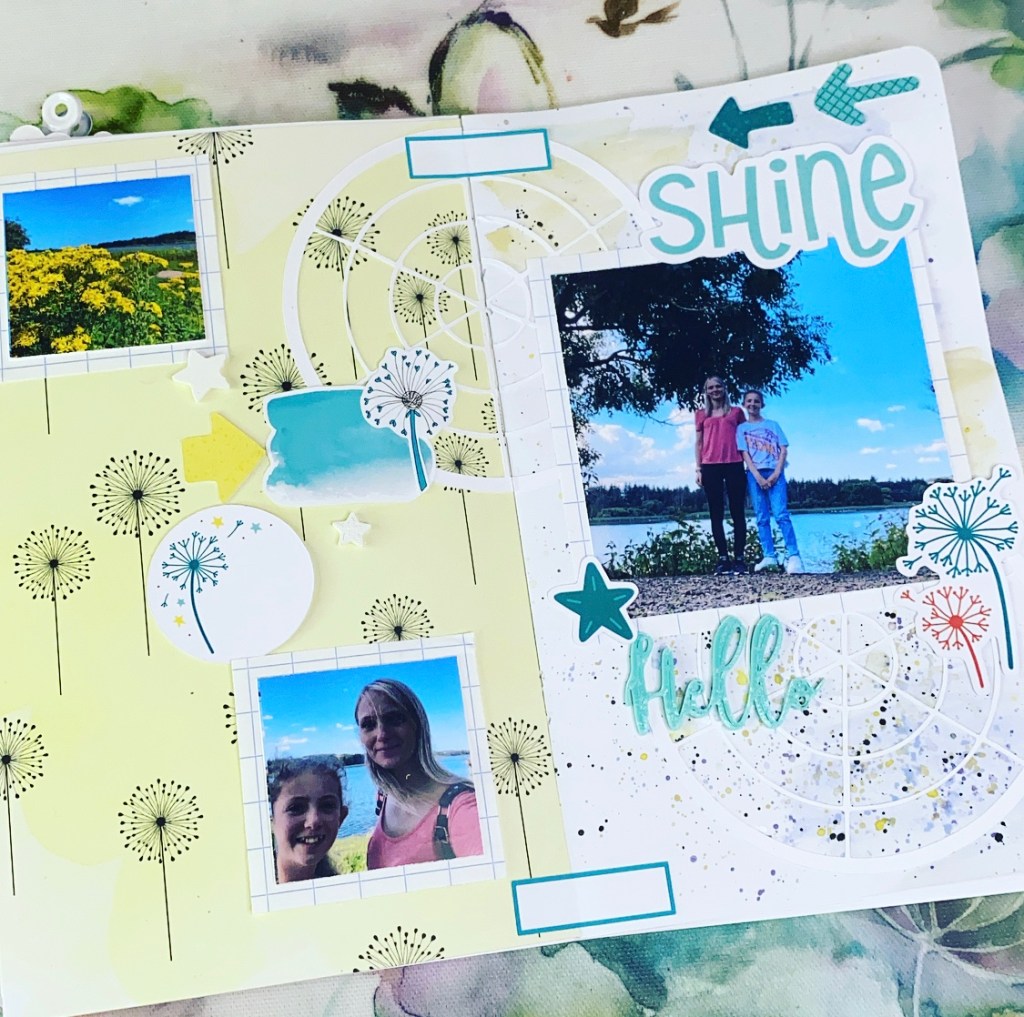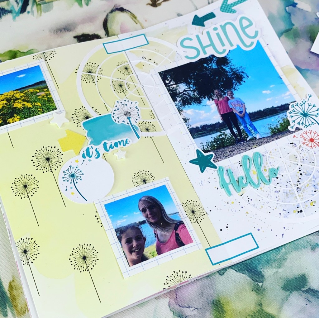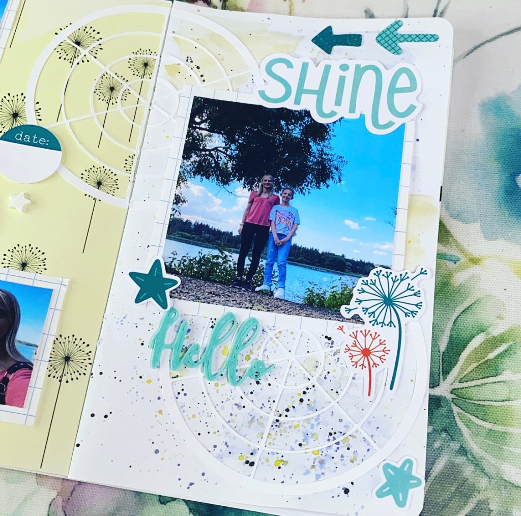 The dandelion wish paper is my favourite this month with the yellow watercolour background and I have taken inspiration from it for my opposite page.