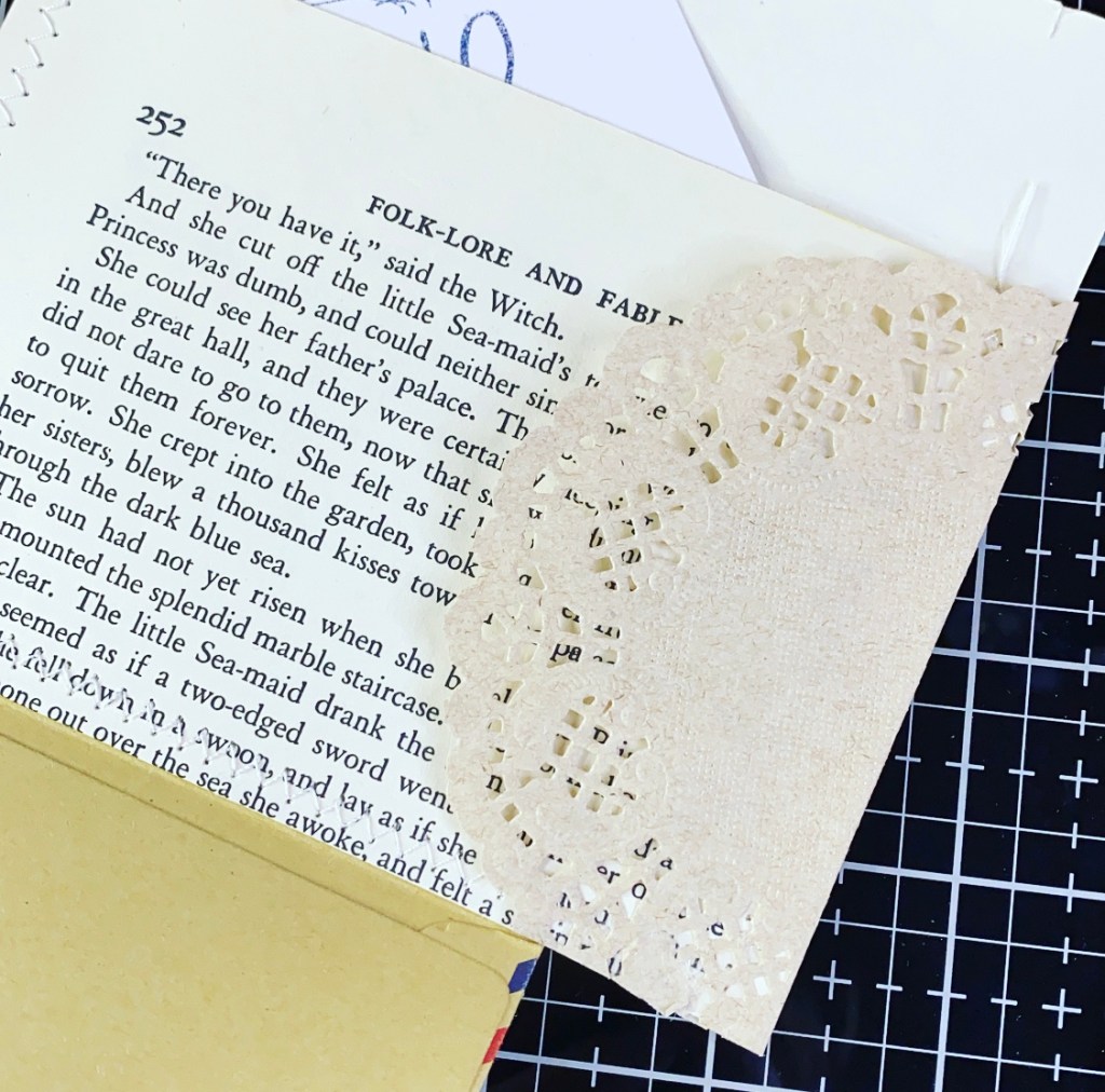 The doilie adds a bit of texture for the base of the envelope.