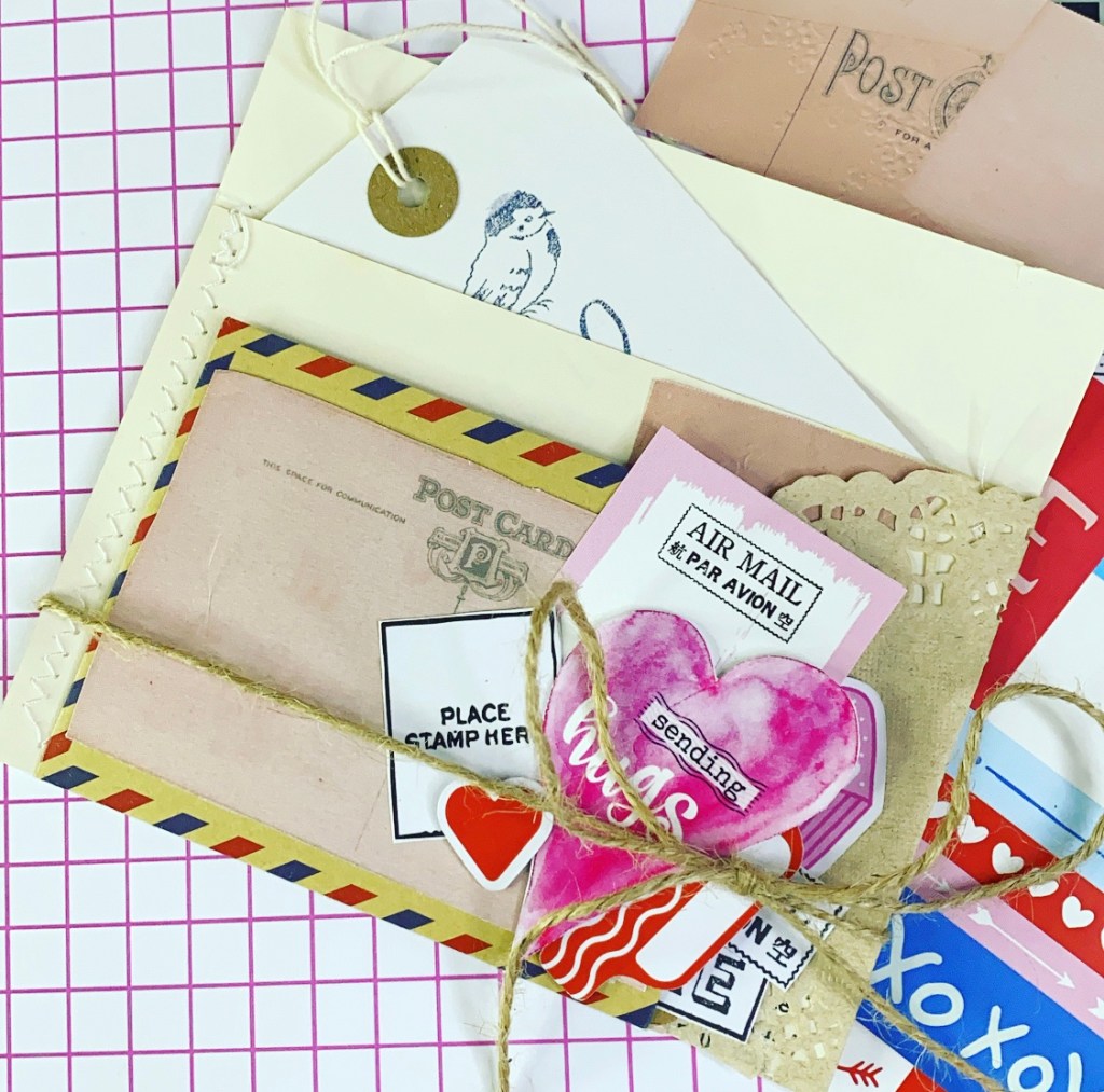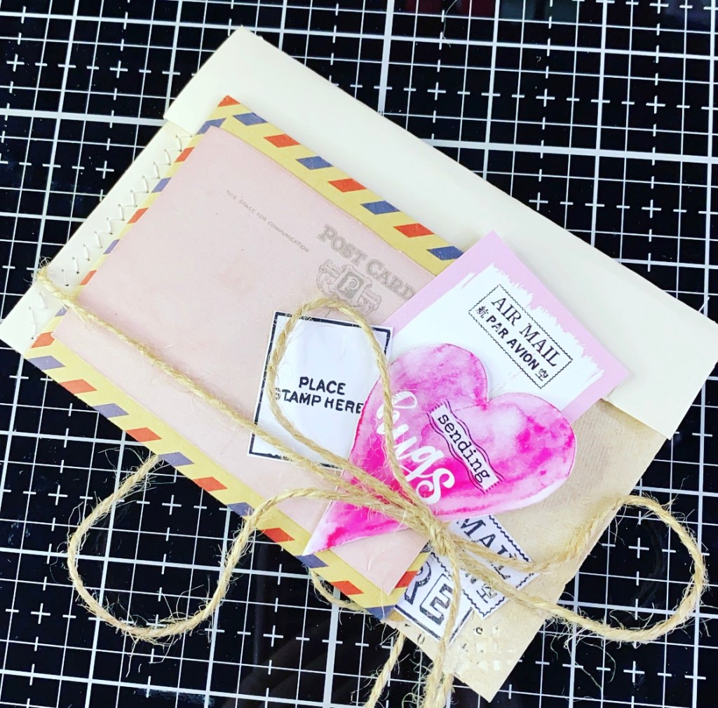 I have tied it up with the string to hold it all closed and it’s done. Nice simple but effective envelope filled with Love 💕