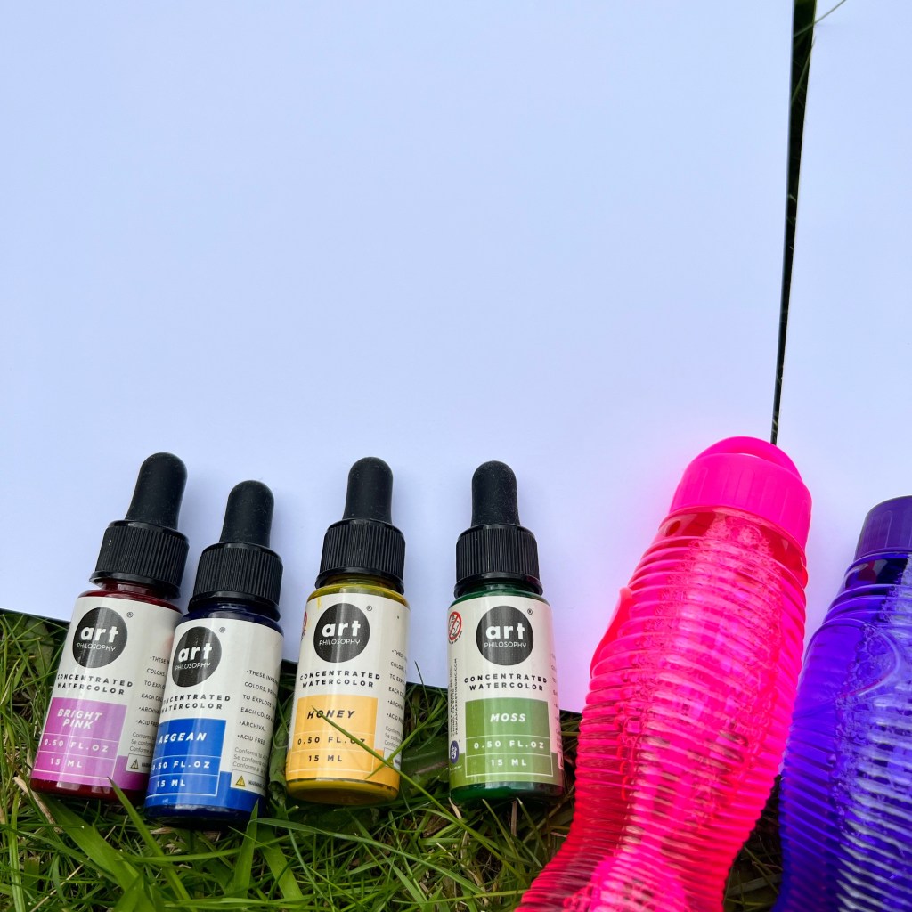 We spent the afternoon in the garden yesterday having a crafty day. I had an idea to add my concentrated watercolours to some bubbles to create a colourful background.