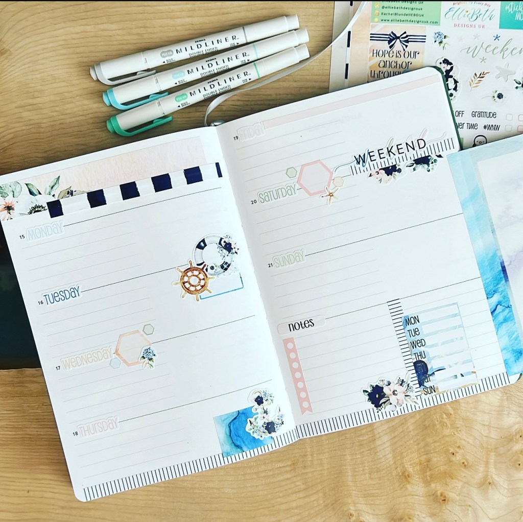 My pages have turned out so pretty with plenty space for me to write and add my extras too. I can’t wait to see how they look at the end of my week, and my journaling is complete.