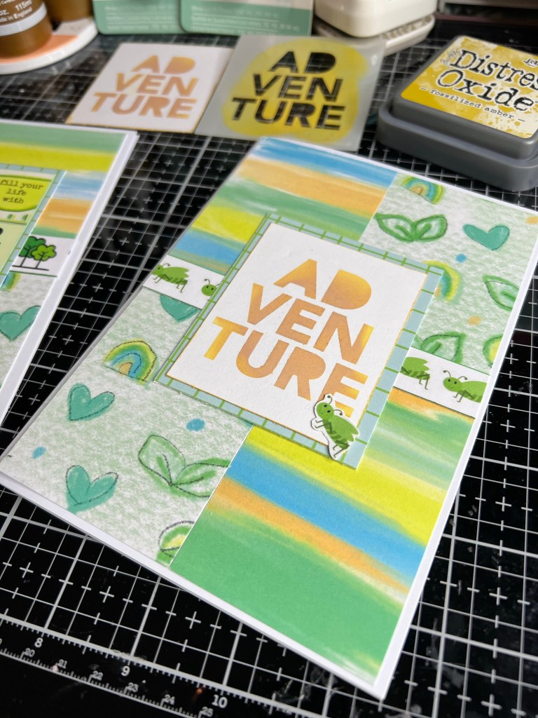 I adore the cricket border and had to also fussy cut one of the little guys out to use as an embellishment.