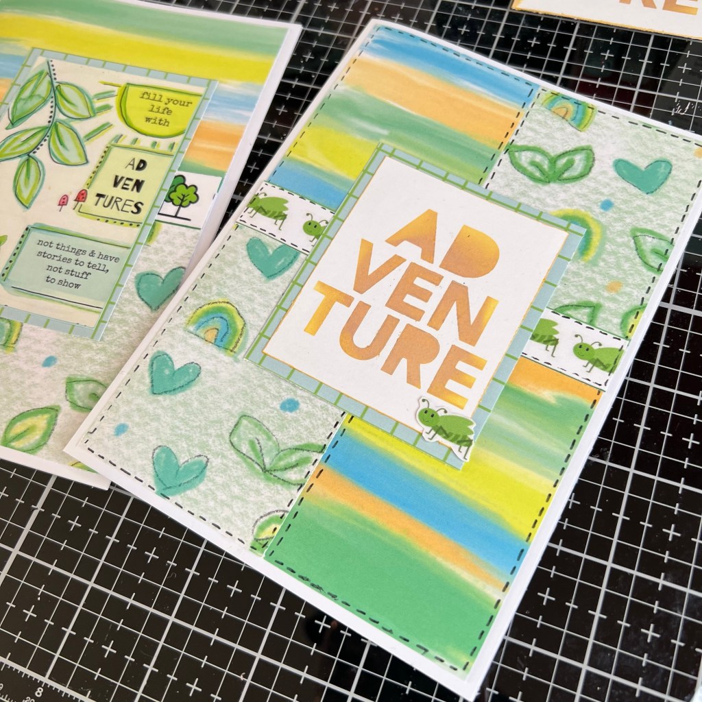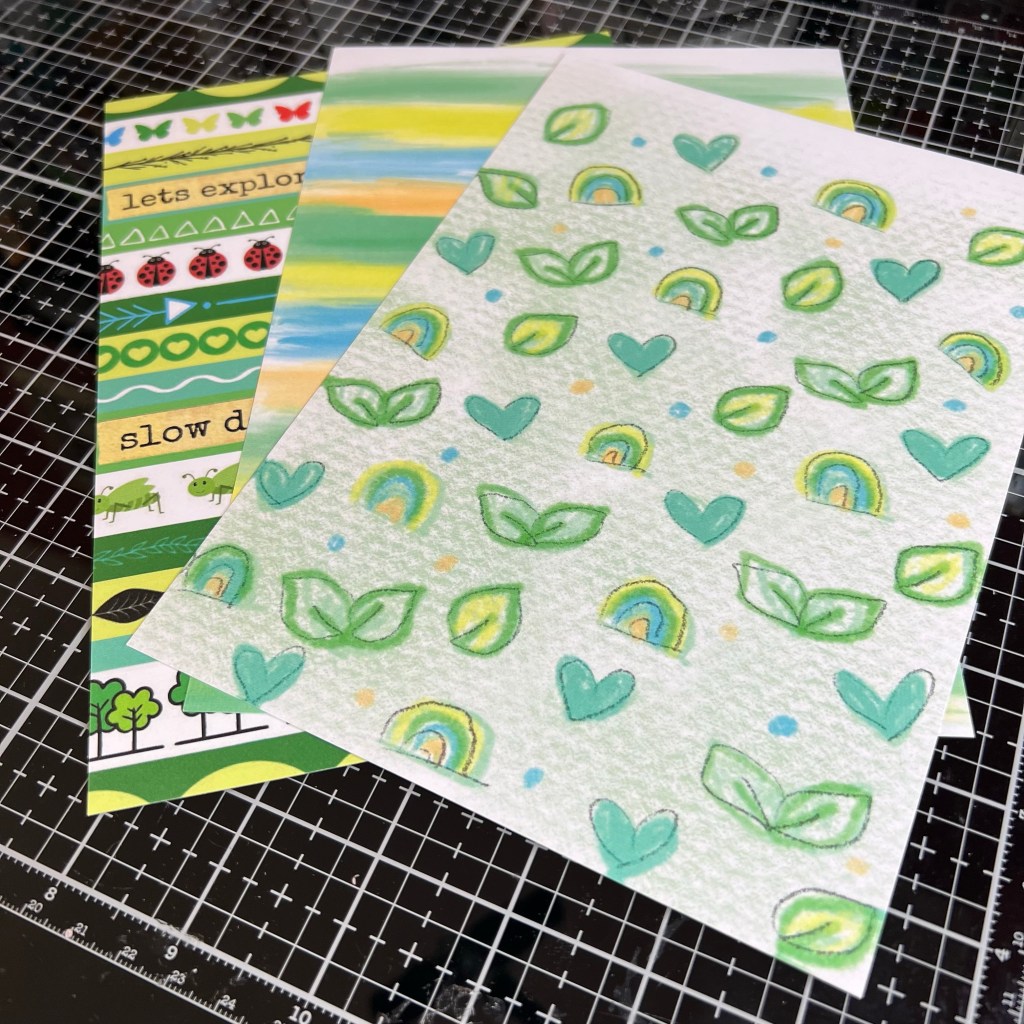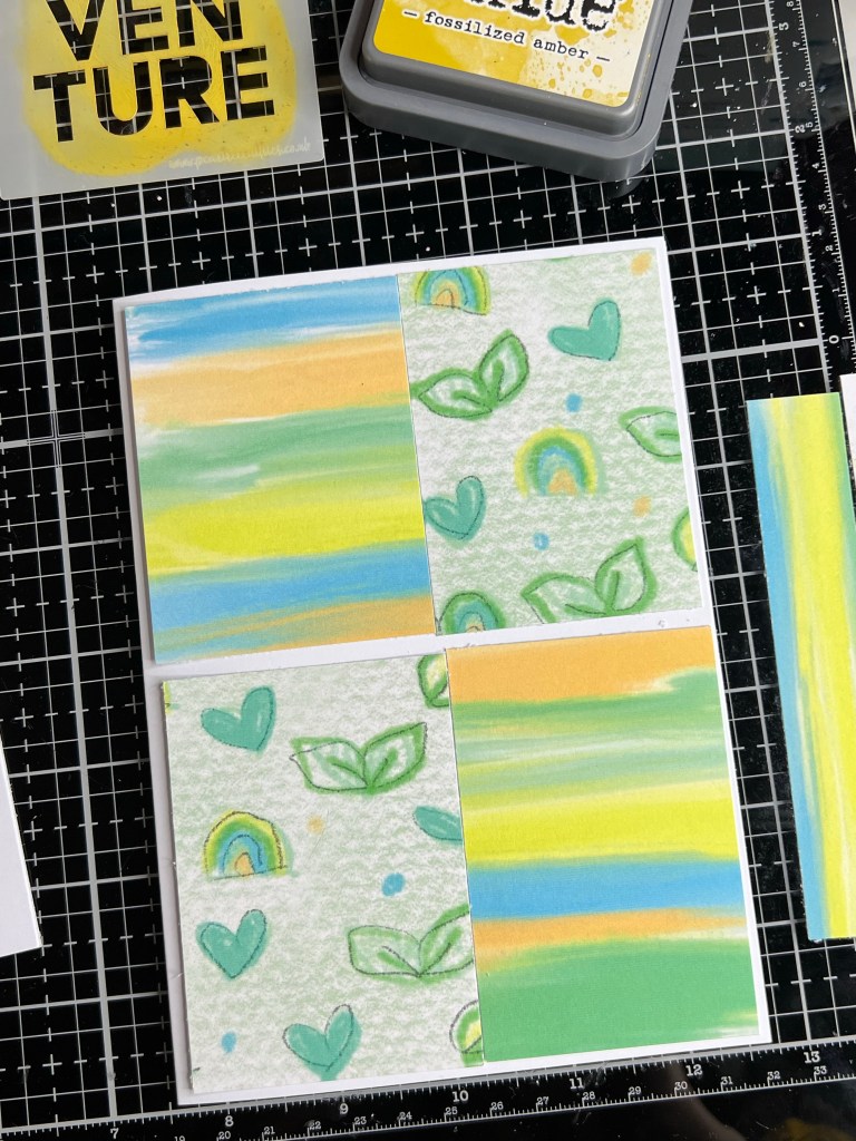 I only used the two sheets of paper for both cards, I cut panels from each sheet and set them out on my cards and once I was happy with the layout I glued them in place.