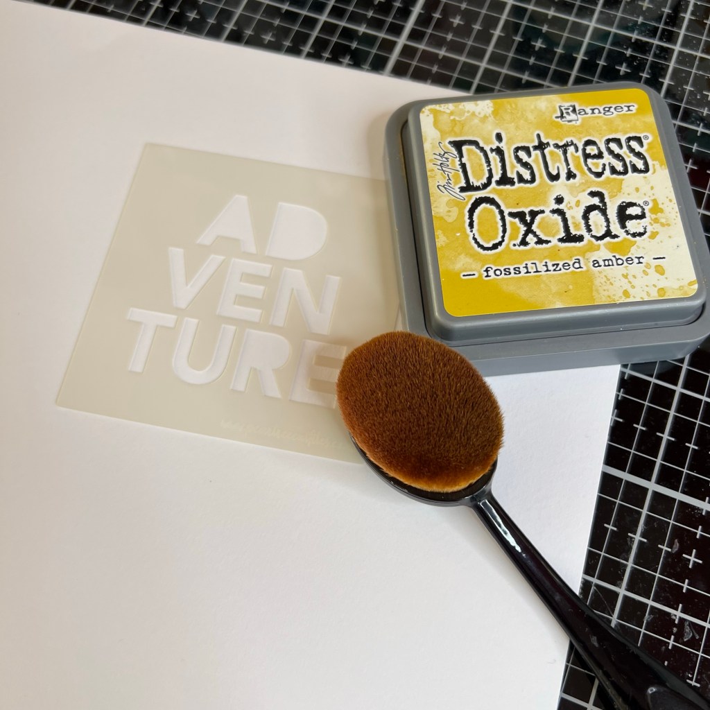 The distress oxide fossilised amber came out a perfect match to the orange tones in the paper.